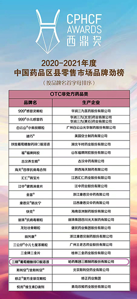 2021年度中国化学制药行业OTC优异产品品牌