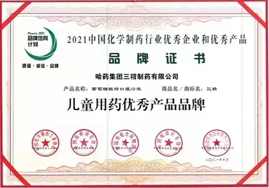 2021年度中国化学制药行业儿童用药优异产品品牌