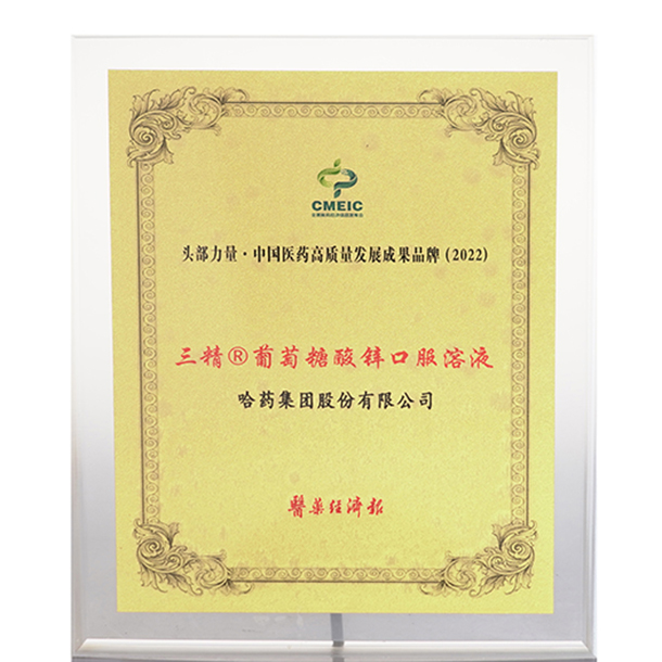2022头部实力·中国医药高质量生长效果品牌葡萄糖酸锌