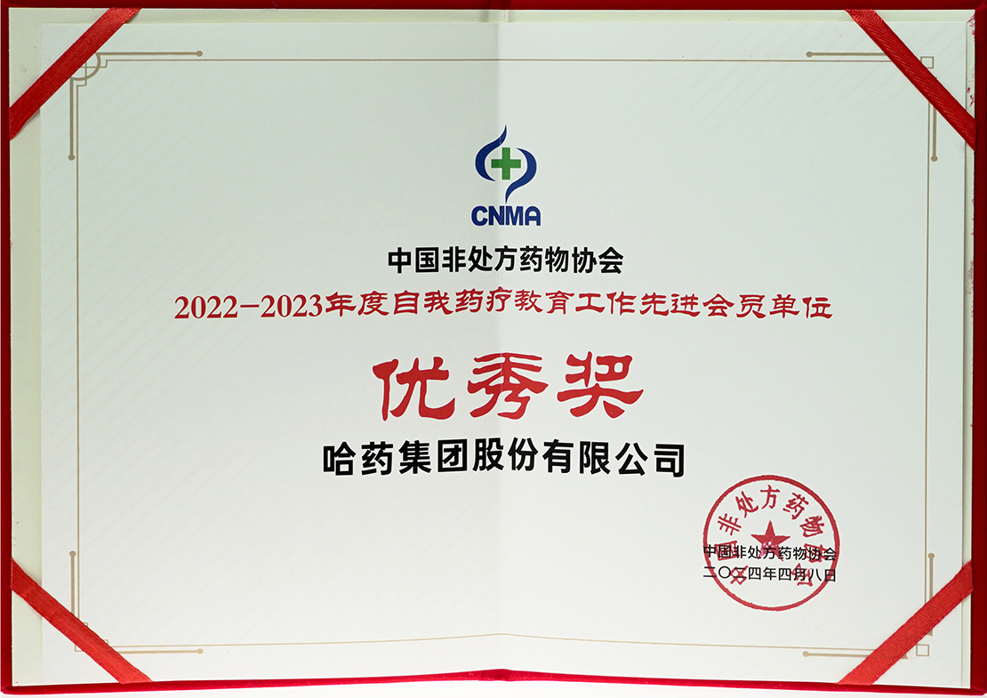 中国非处方药物协会2022-2023年度自我药疗教育事情先进会员单位2